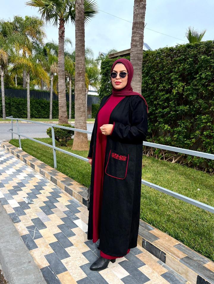 تصميم 2 في 1: كيمونو بجيوب مطروزة بالطرز المغربي الأصيل، يمكن تنسيقه مع العباية أو مع ملابس أخرى لخرجاتك اليومية.